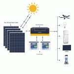 1kW Luminous solar system can run 4 LED lights + 3 fans + 1 cooler / * 4 LED lights + 3 fans + 1 TV + 1 fridge / * 800 watt any type of load. This 1 kilowatt solar system can run up to 1000 watt maximum load. It requires approx. 8 sq. mt area for installation.